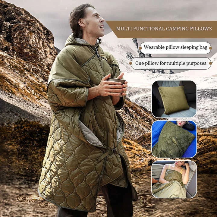 Sac de couchage extérieur 4 en 1 adulte, construction en fibre de ligne avec couvercle en coton et doublure en flanelle en coton molle pour une chaleur et un confort maximum.