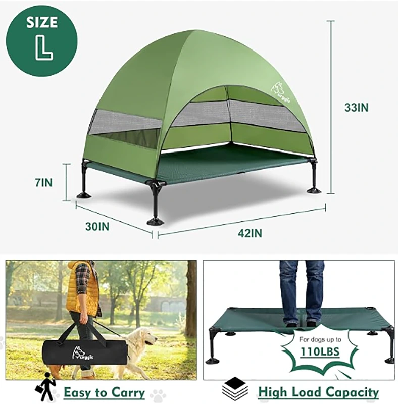 Lit pour chien et chat avec auvent. Maille cousue sur 3 des côtés, cet auvent permettra une excellente circulation de l'air et ne bloquera pas la vue des chiens. Avec cet article, vous serez assuré que vos animaux se détendront dehors en été ; garantie satisfaisante de Zhejiang Jiayu Outdoor Products Co., Ltd. Si vous avez des questions, veuillez nous le dire, nous vous répondrons dans les 24 heures et résoudrons votre problème dans les plus brefs délais.