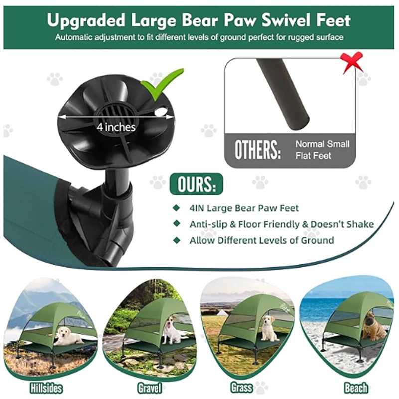 Lit pour chien et chat avec auvent, lit pour chien surélevé amélioré avec auvent, lit pour chien surélevé portable avec pieds antidérapants stables, lit pour animal de compagnie à ombre plus large, lits pour chiens surélevés pour les grands chiens en camping, utilisation en intérieur et en extérieur.