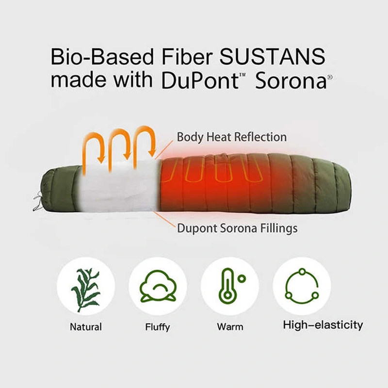 Sac de couchage de camping durable à température constante, la double fermeture éclair permet la ventilation des pieds. Il est également livré avec un sac de compression pour un rangement facile, économisant ainsi de l'espace pendant le voyage.