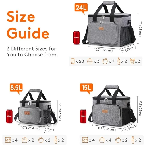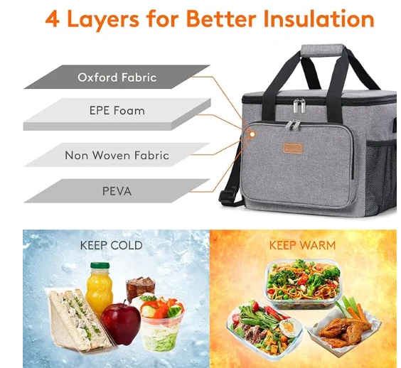 Grande capacité: Dimensions - 13,8 "(35 cm) × 11" (28 cm) × 11 "(28 cm). La capacité maximale de la boîte à lunch pour les adultes est de 24L, et est suffisamment spacieuse pour stocker 40 canettes de coke (330 ml), ou votre déjeuner, comme les sandwichs, la salade, les collations, les plages, les plages, le tricot et le fait.