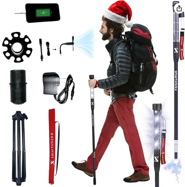 Pole de randonnée LED, lumière LED qui fournit une impressionnante 400 lumens de sortie de lumière plus forte que votre lampe de poche moyenne qui peut durer jusqu'à 10 heures sur une seule charge. Pôles de trekking de haute qualité pour la randonnée, le camping ou toute autre activité nocturne et un éclairage clignotant pour toute situation d'urgence