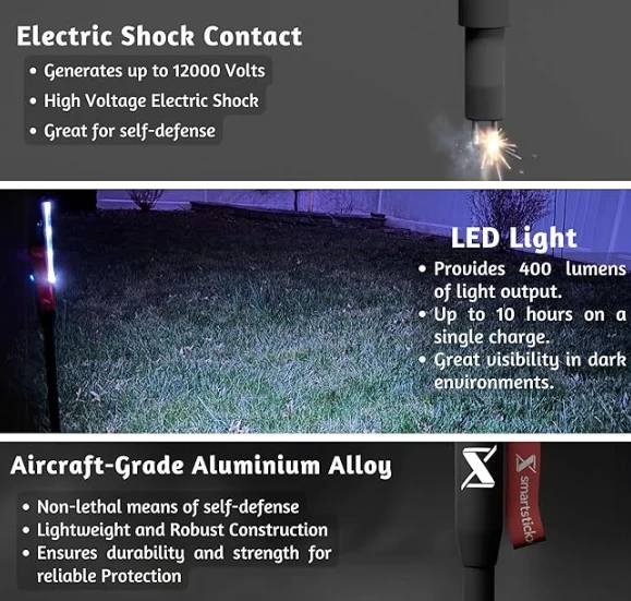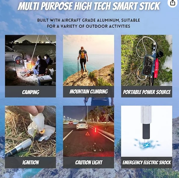 Pole de trekking léger LED.POT-POSE DE TREKKING MULTIPUSE DE QUALITÉ PRÉMIUM pour la randonnée, le bâton de marche de survie et le bâton d'autodéfense pliable pour toutes les activités de plein air dangereuses.