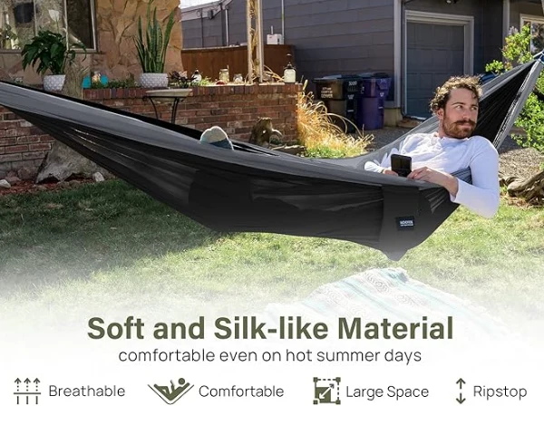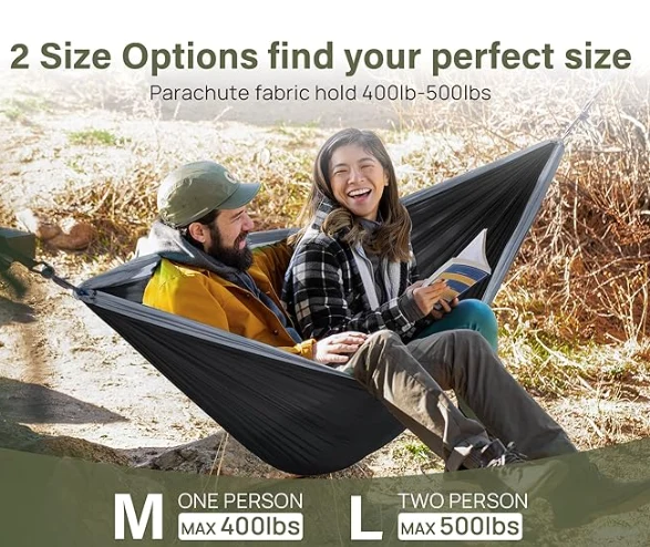 Hamac de camping léger combinaison parfaite de durabilité et de confort. Que vous campiez, la randonnée, la plage ou que vous vous détendiez simplement sur votre terrasse avec un stand de hamac, nos hamacs sont l'ajout idéal pour vous aider à vous détendre et à vous détendre dans un confort ultime.