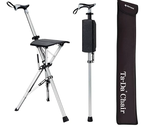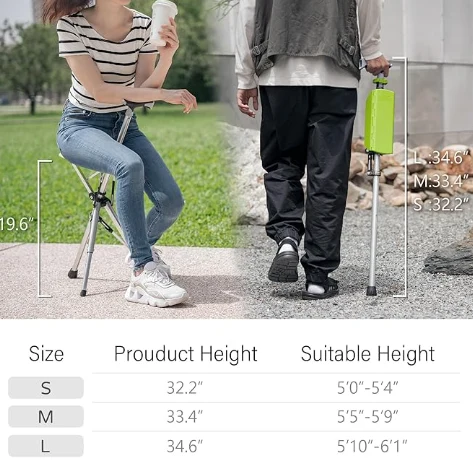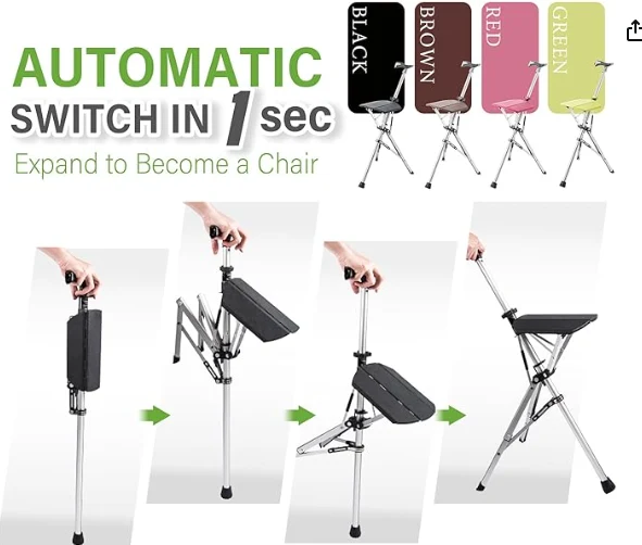 Old Men Alpenstock Trekking Cane, Reposing et un bâton de randonnée pour le soutien. Cette conception, qui convertit instantanément un bâton de randonnée en chaise avec un claquement, offre un repos pour les jambes fatiguées et les genoux à tout moment.