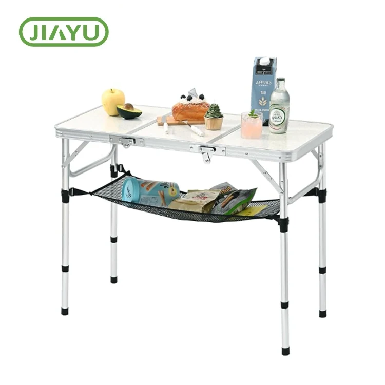 Table de camping en aluminium portable. Peut être utilisé comme table de patio ou table d'ordinateur portable. Convient pour manger, pique-nique, pêche, camping et barbecue. Il est suffisamment polyvalent pour répondre à vos besoins quotidiens.Zhejiang Jiayu Outdoor Products Co., Ltd., est livré avec une couche de maille de stockage et de stockage sous la table pour tenir vos éléments essentiels. Deux s-hooks pour avoir facilement suspendu plus de trucs