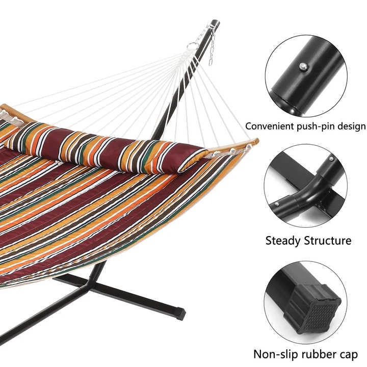 L'assemblage de hamacs de camping en nylon portable de ce hamac est très simple, aucun outil n'est nécessaire. Une fois le support assemblé, le hamac peut être accroché directement au crochet directement et il peut également être facilement démonté.