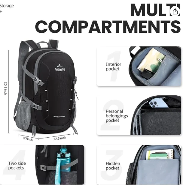 Sac à dos pliable de randonnée étanche, une poche humide étanche est ajoutée au compartiment principal, une fermeture éclair à l'arrière de ce sac à dos qui a conduit à la poche humide interne, pour mieux séparer les vêtements en sueur, les serviettes ou d'autres choses personnelles après avoir nagé ou fait de l'exercice